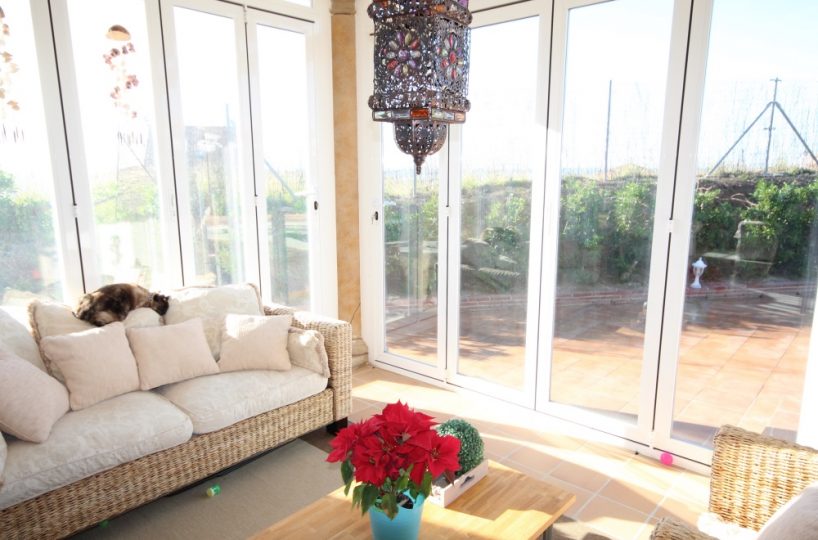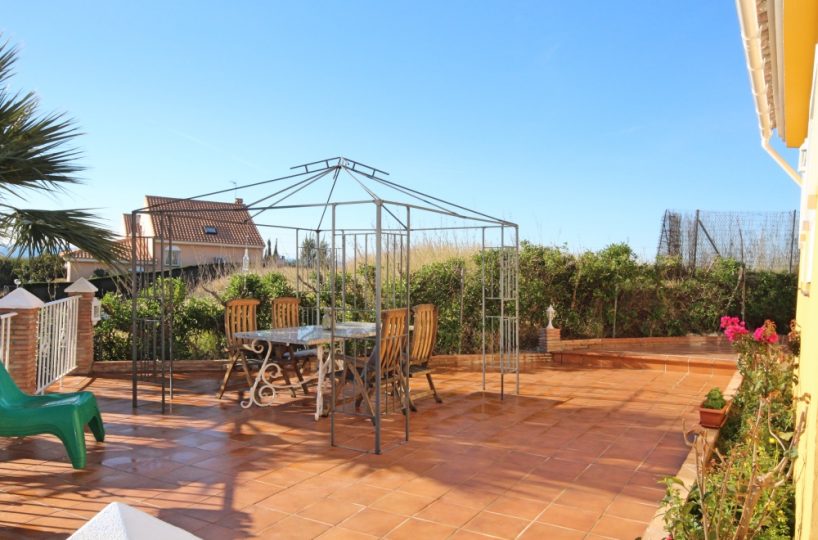 Este tranquilo, hermoso, 3 dormitorios, orientación sur, 2 plantas, chalet independiente está situado dentro de sus propios jardines privados, bellamente conservados en Riviera del Sol en Mijas Costa en la Costa del Sol.