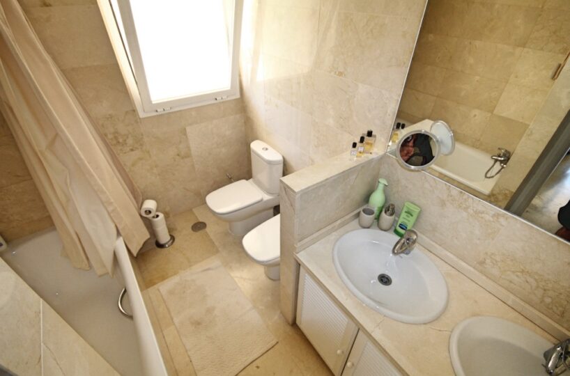 This apartment is finished to a very high standard, with marble flooring throughout, fully tiled marble bathrooms, air con (H&C), video entry phone, Satellite TV, alarm, etc. Covered parking space included in the price.