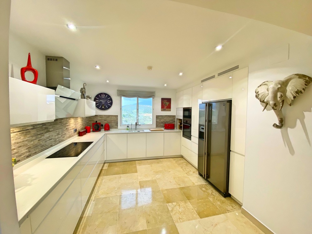 On entrance into the property the hallway leads to the kitchen which boasts high quality units, with built in quality integrated appliances and has views overlooking the Riviera valley and Mountains.